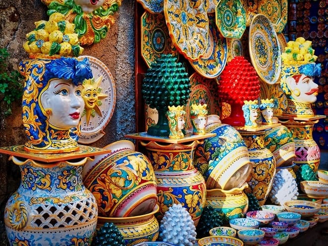 Anche la ceramica maiolica ericina viene creata seguendo le antiche tecniche del XV sec. e dipinta esclusivamente a mano con motivi floreali o disegni geometrici.